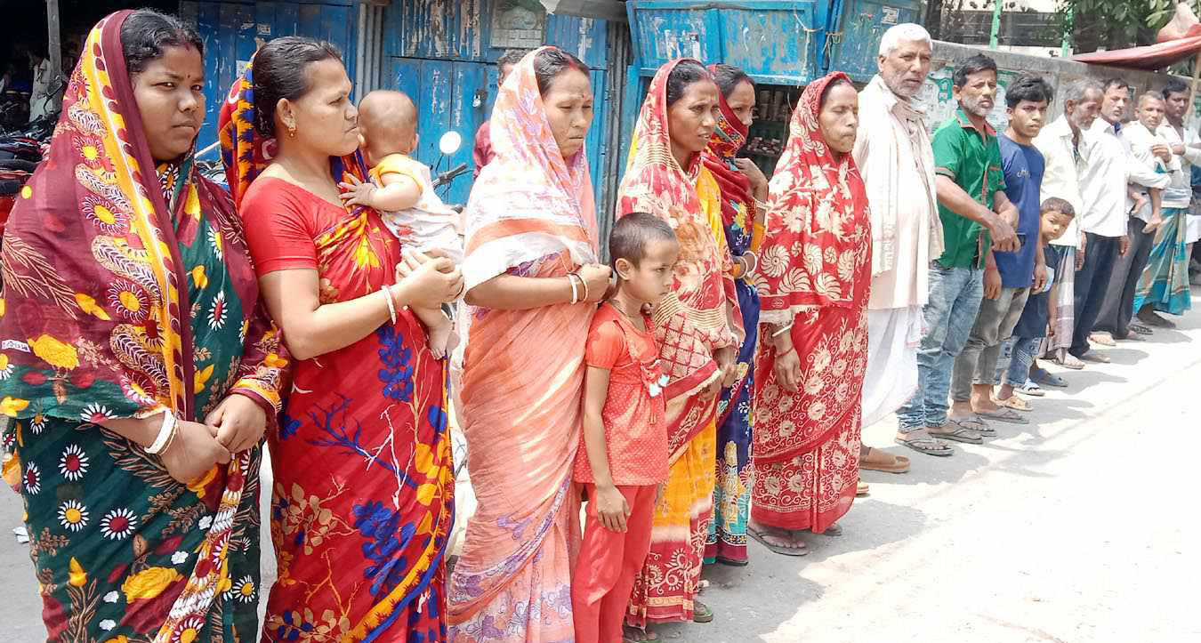 সংবাদ সম্মেলনে জানানো হয়, গাইবান্ধার পলাশবাড়ী উপজেলার হোসেনপুর ইউনিয়নের ঝাপড় গ্রামের হেমন্ত চন্দ্র বর্মণ ওরফে কালিয়া সাধু প্রায় ১৫ বছর আগে একই গ্রামের শফিকুল ইসলামসহ ৯ জনের কাছে ৫০ শতক জমি বিক্রি করেন। এরপর থেকে ক্রেতারা জমি ভোগদখল করছেন। কিন্তু তাদের মধ্যে মৃত একাব্বর আলীর ছেলে শফিকুল ইসলাম বিভিন্ন সময়ে সংখ্যালঘু হেমন্ত চন্দ্র বর্মণের বাড়িঘর ও সম্পদ দখলের পাঁয়তারা করতে থাকে। এরই জেরে তিনি তার পরিবারের ওপর অত্যাচার শুরু করে। শফিকুল ইসলাম ও তার লোকজনের বাঁধা ও হুমকির মুখে হেমন্ত চন্দ্র চলতি বছর ৮ বিঘা জমিতে বোরো ধান চাষ করতে পারেননি। এছাড়াও হুমকির কারণে তিনি পানের বরজ ও কলা বাগানের ফসল ভোগ করতে পারছেন না। উপরন্তু গত ২৬ ফেব্রæয়ারি শফিকুল ও তার পালিত দুর্বৃত্ত বাহিনী হেমন্ত চন্দ্রের বাড়িতে আক্রমণ করে বাড়িঘরের ব্যাপক ক্ষতিসহ মহিলাদের শ্লীলতাহানি ও গরুসহ বিভিন্ন জিনিসপত্র লুট করে নিয়ে যায়। এ ঘটনার পর থানায় মামলা করতে যান ভুক্তভোগী হেমন্ত চন্দ্র বর্মণ। কিন্তু থানা কর্তৃপক্ষ তার মামলাটি গ্রহণ না করে উল্টো প্রতিপক্ষ শফিকুল ইসলামের মামলাটি রেকর্ডভুক্ত করে। বর্তমানে শফিকুল ইসলামের হুমকিতে বাড়িঘর ছেড়ে অন্যত্র আশ্রয় নিয়ে মানবেতর জীবন যাপন করছে হেমন্ত চন্দ্রের পরিবার। সংবাদ সম্মেলন শেষে ভুক্তভোগী পরিবারের মহিলা ও শিশুসহ লোকজন প্রেস ক্লাবের সামনের রাস্তায় মানববন্ধন করেন।